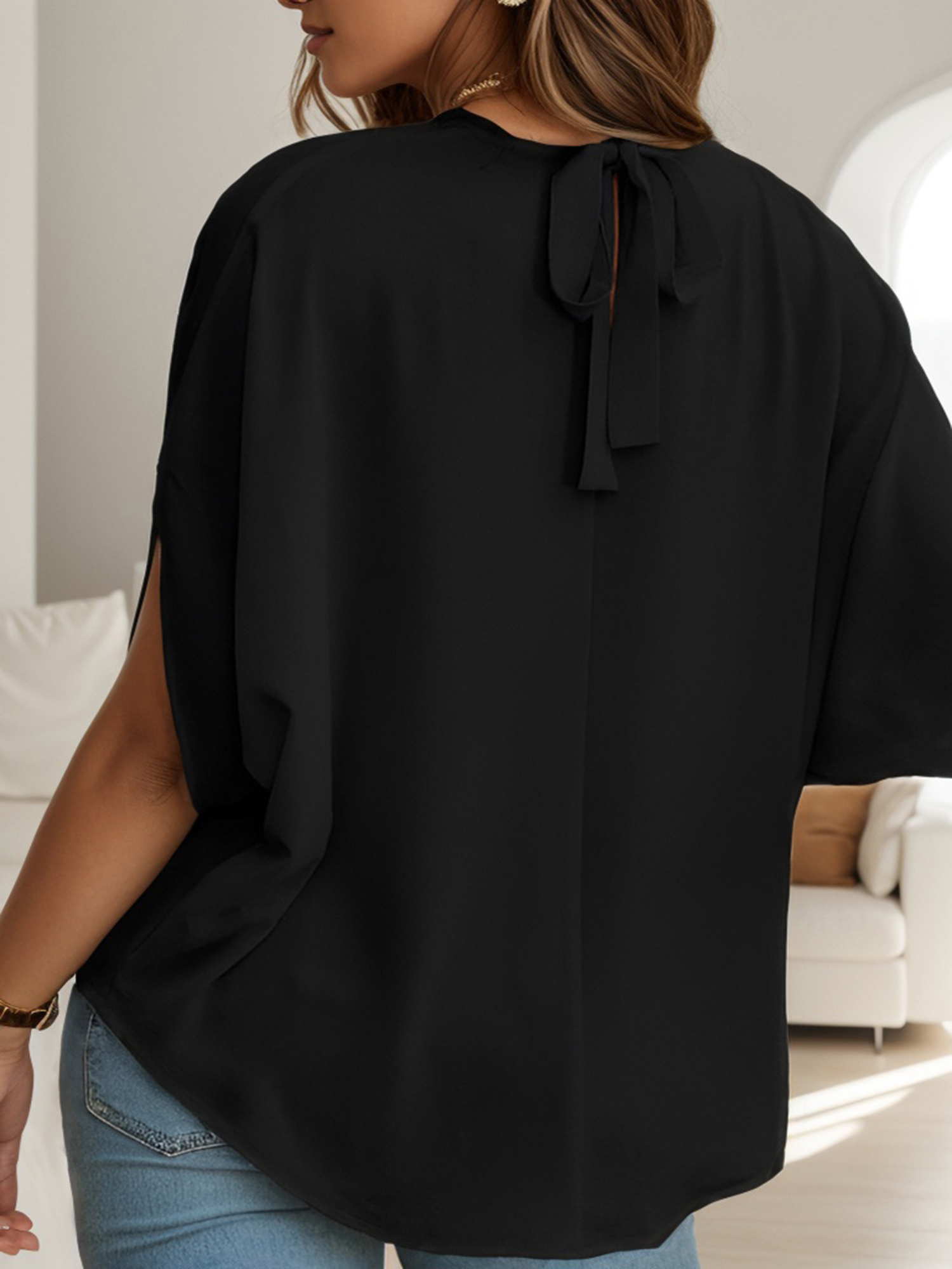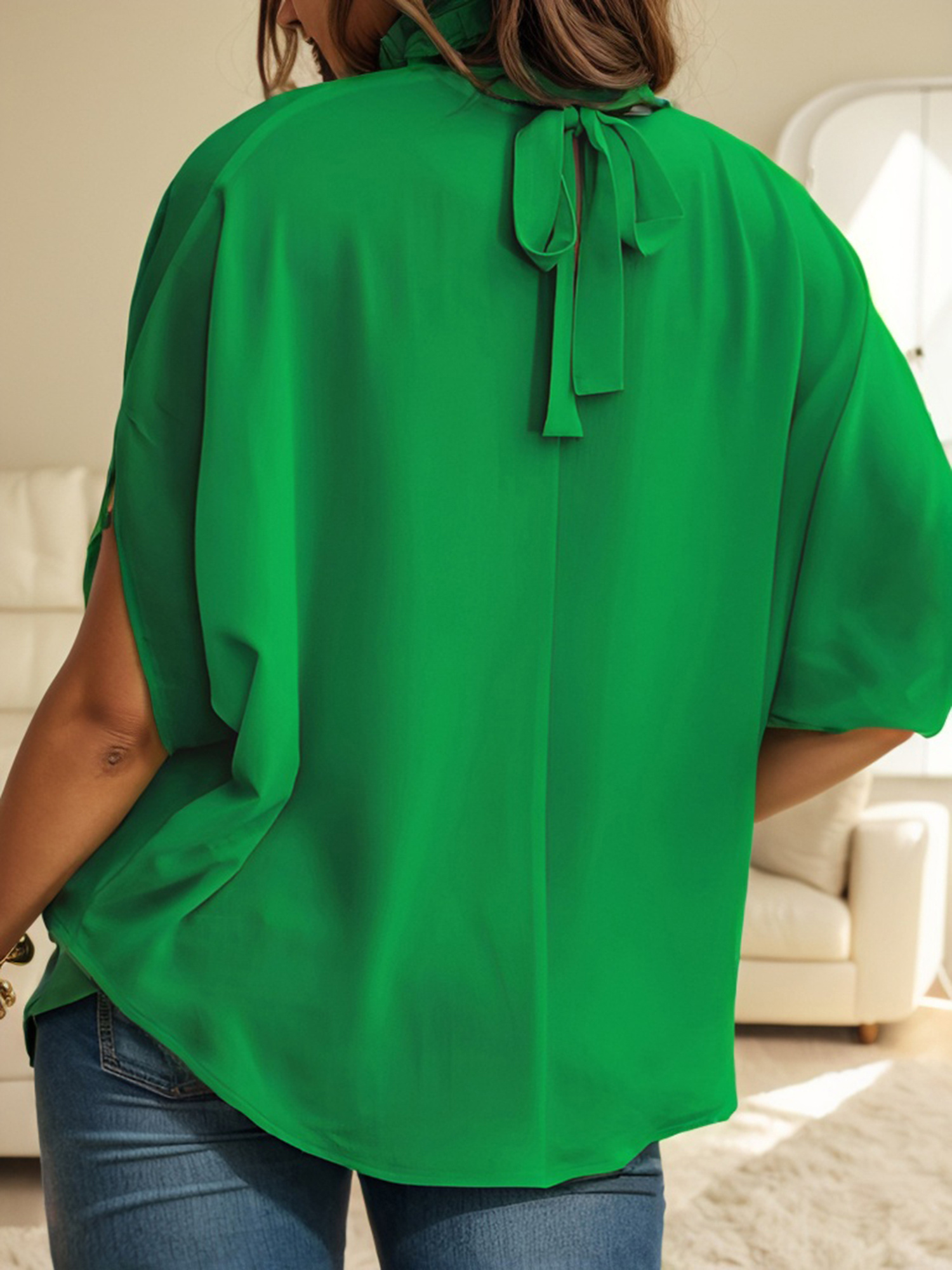 Tooluck Plus Size Women's Casual Lace-Up Dolman Sleeve Plunge Collar Shirt Top