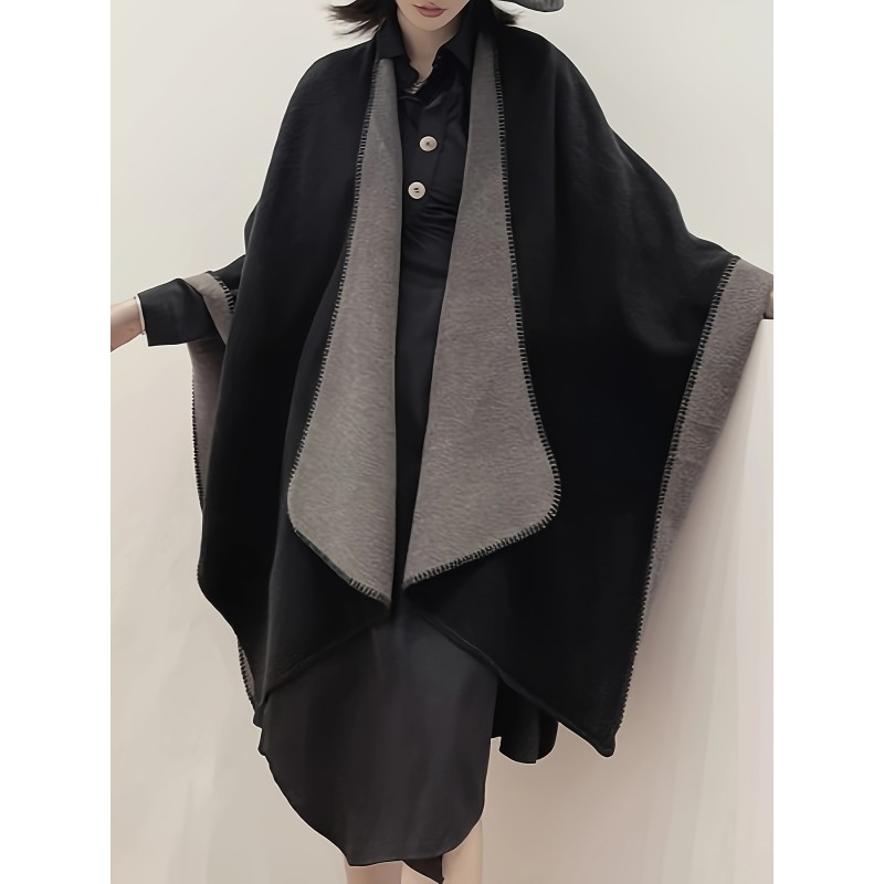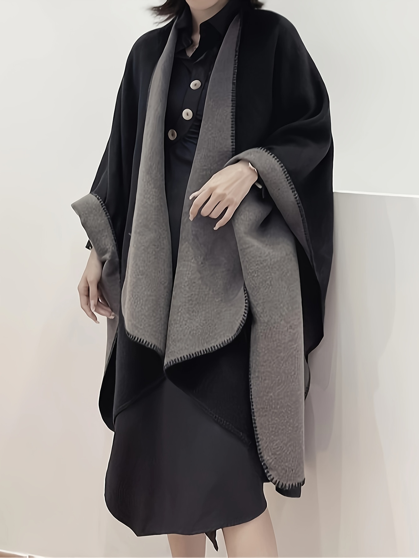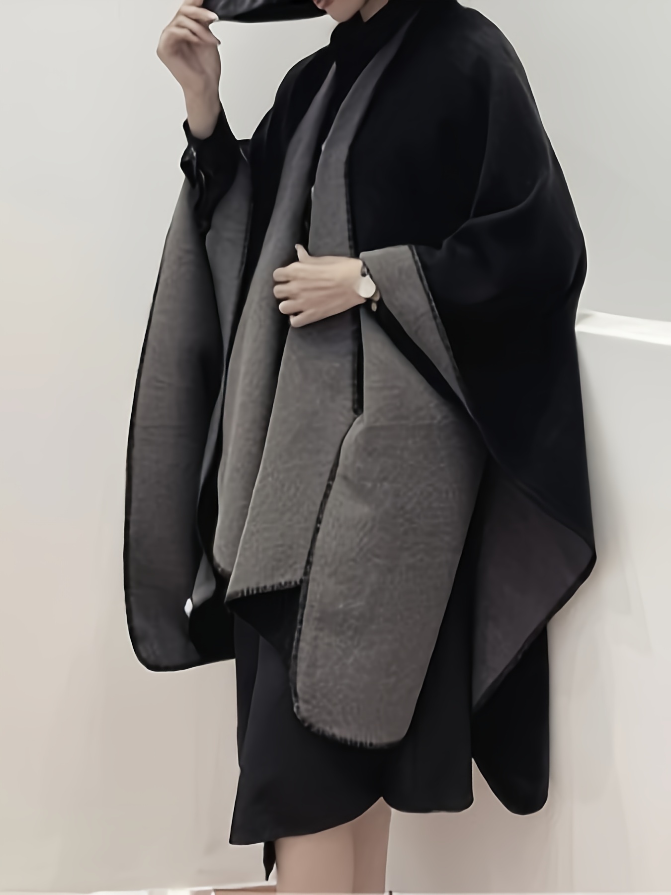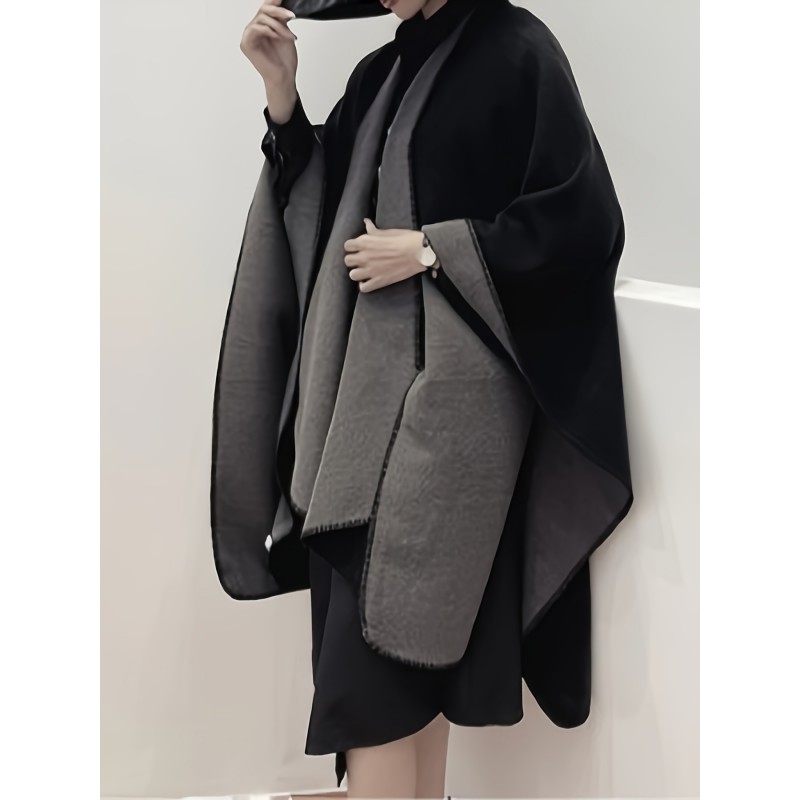 Plus Size Elegant Coat, Women's Plus Double-sided Batwing Sleeve Open Front Waterfall Collar Loose Fit Shawl Coat