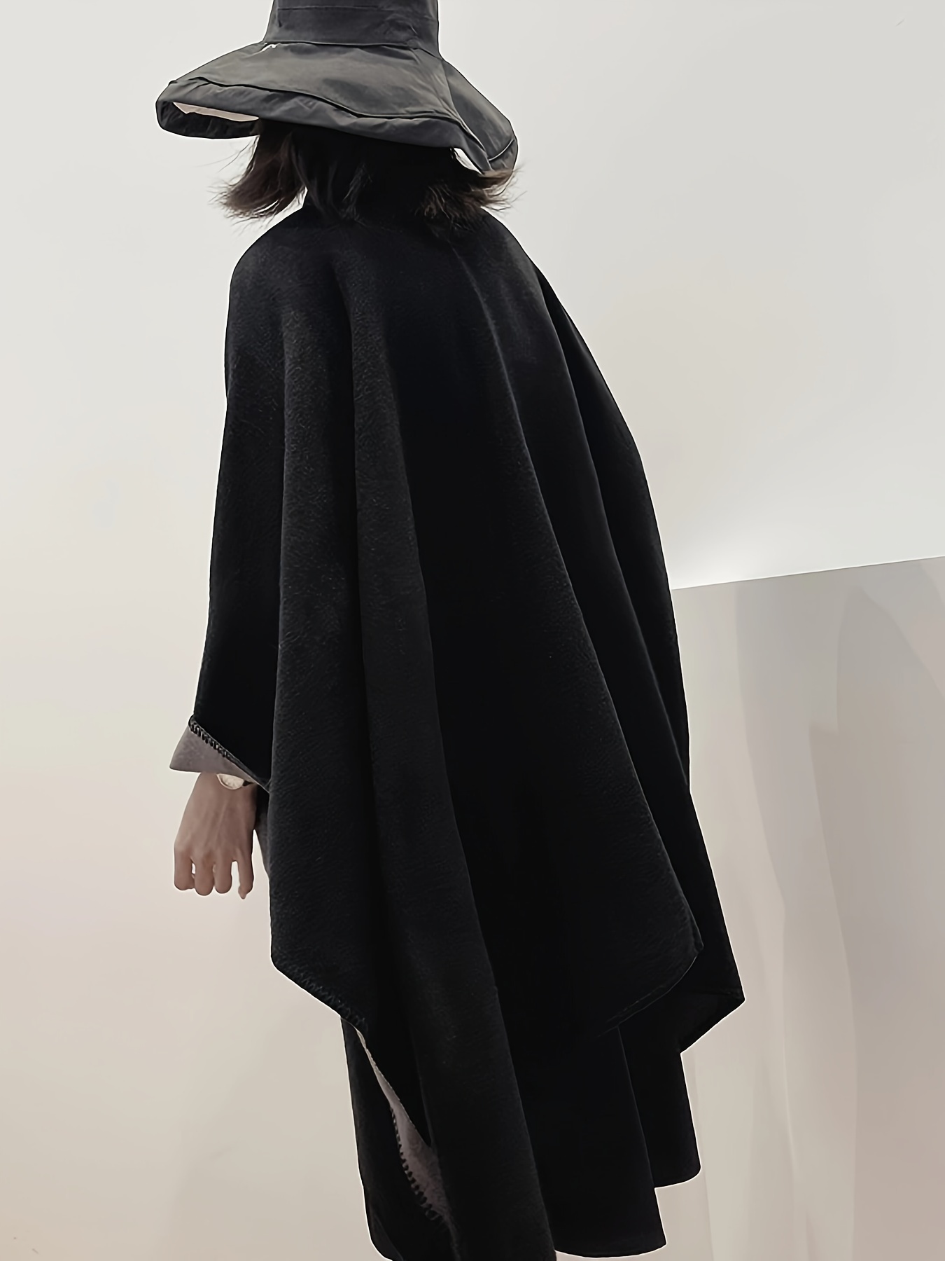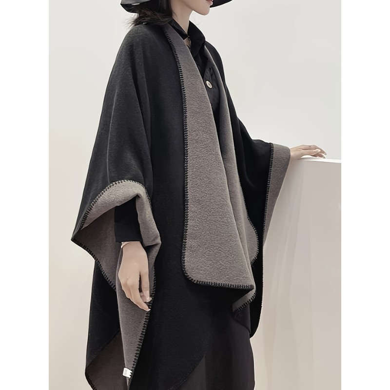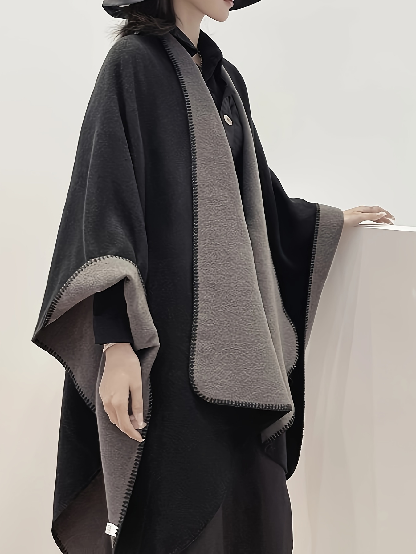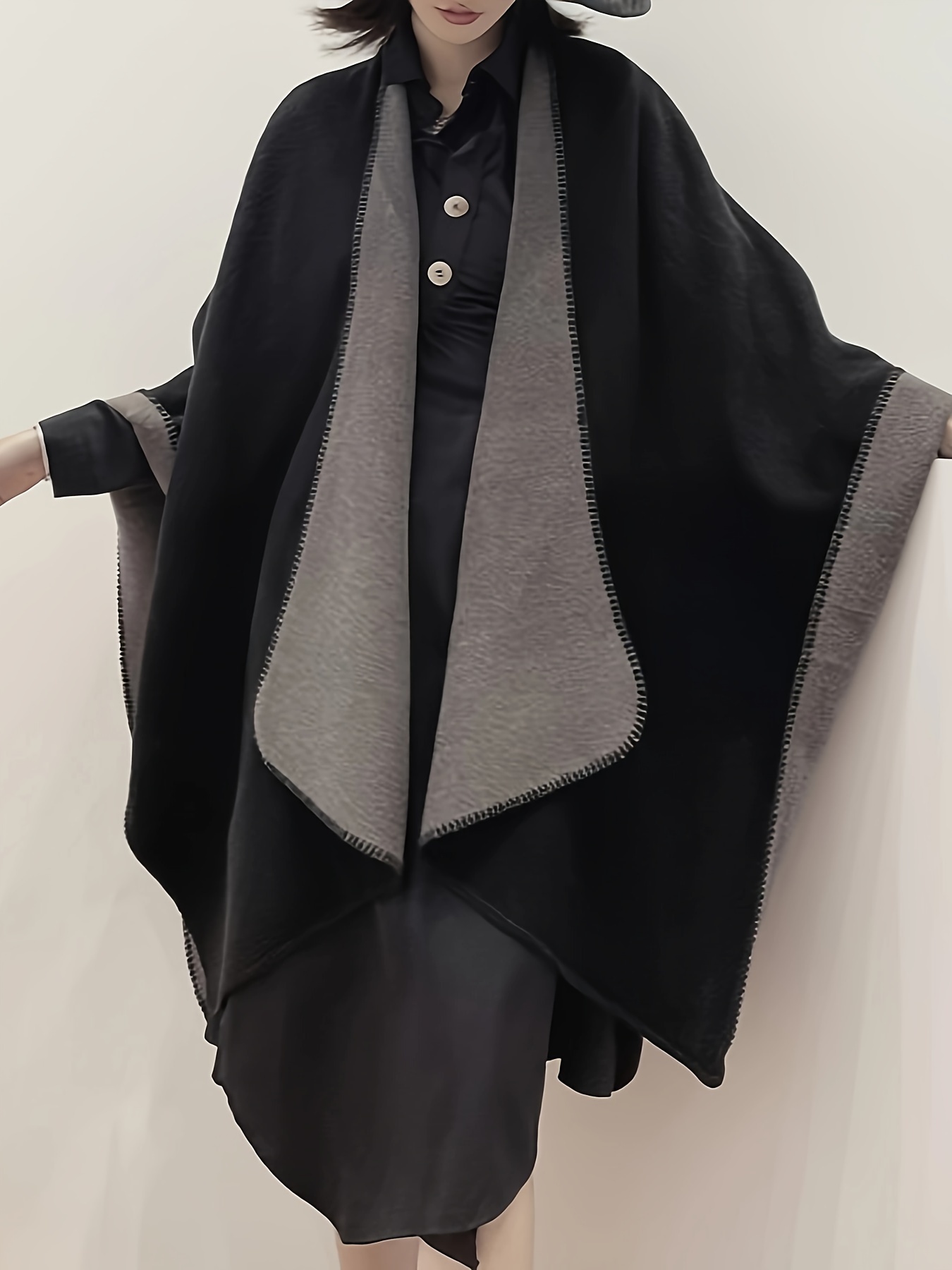 Plus Size Elegant Coat, Women's Plus Double-sided Batwing Sleeve Open Front Waterfall Collar Loose Fit Shawl Coat