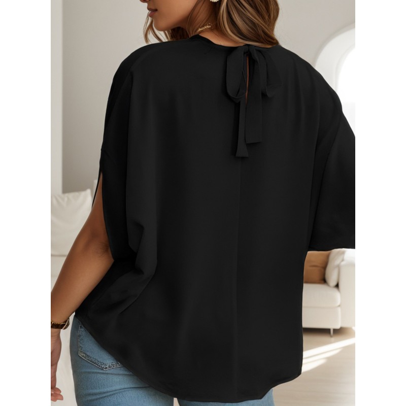 Tooluck Plus Size Women's Casual Lace-Up Dolman Sleeve Plunge Collar Shirt Top