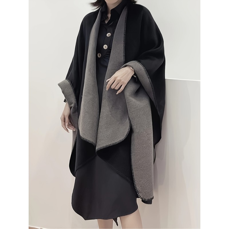 Plus Size Elegant Coat, Women's Plus Double-sided Batwing Sleeve Open Front Waterfall Collar Loose Fit Shawl Coat