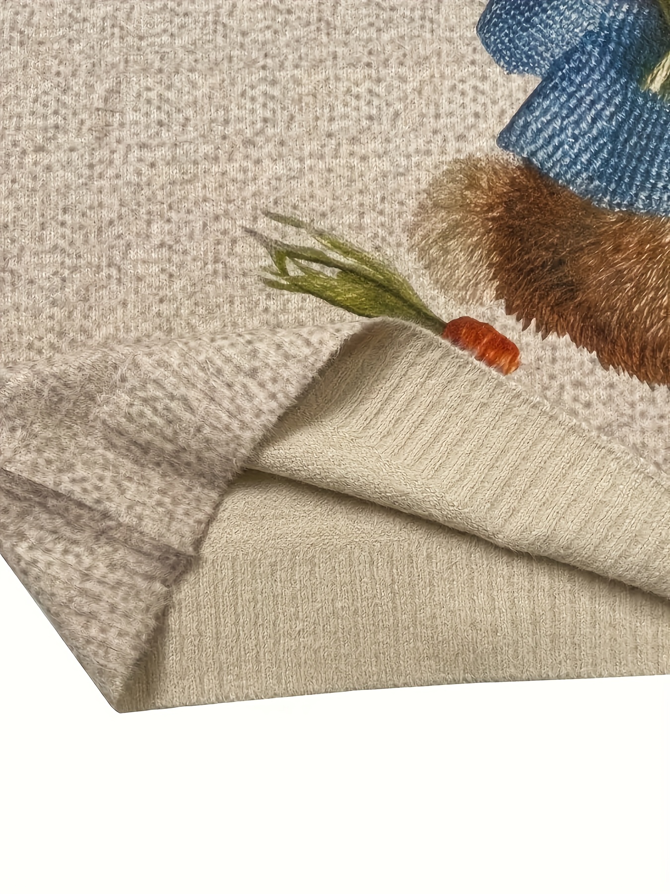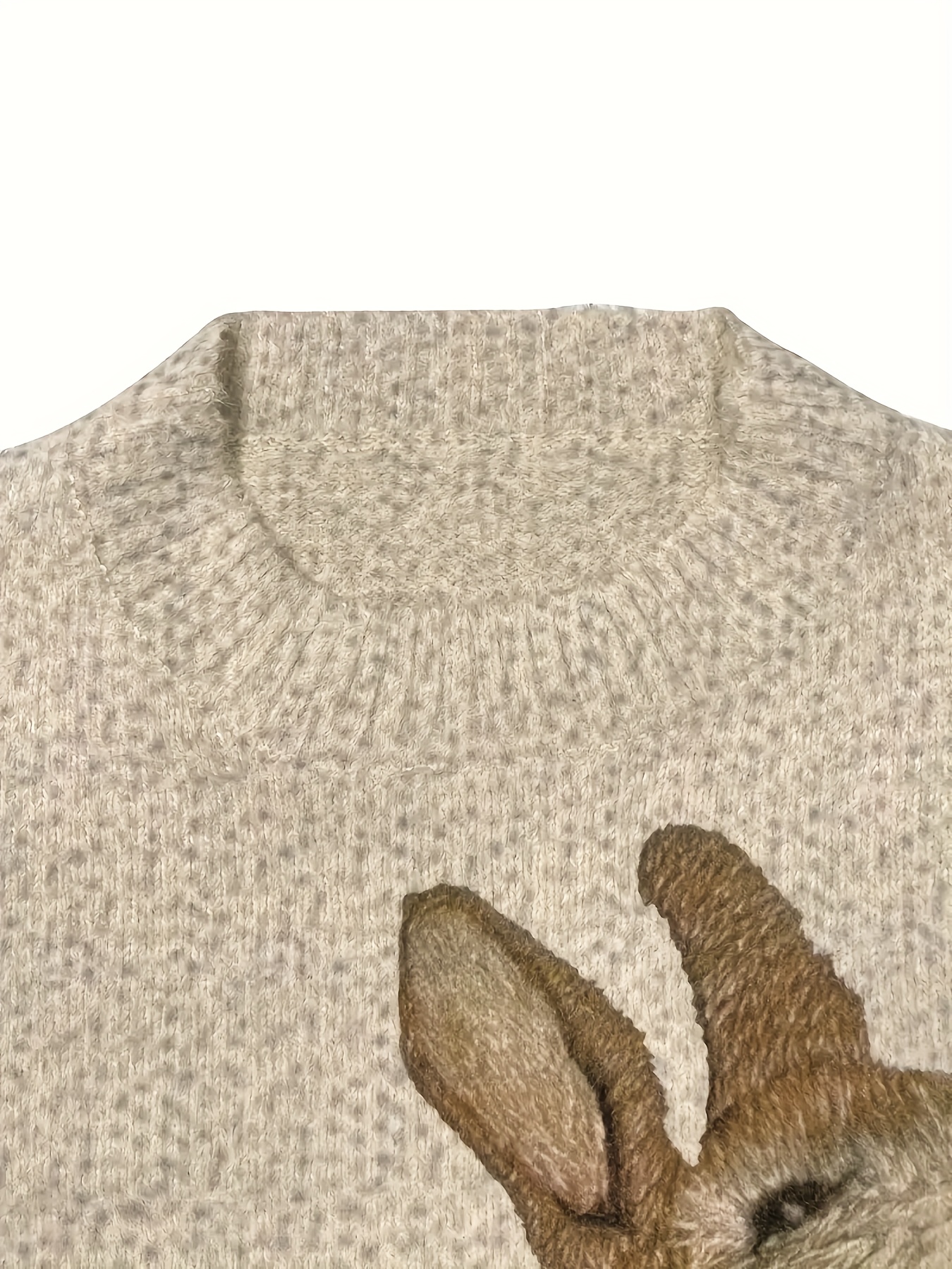 Women's Plus Size Elegant Crew Neck Sweater with All Over Rabbit Print, Polyester Knit Pullover with Slight Stretch for All Seasons